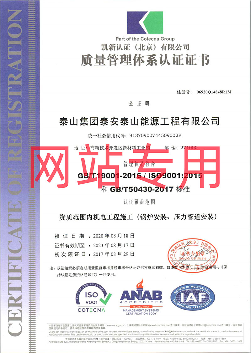 質(zhì)量管理體系認(rèn)證證書(shū)(鍋爐、壓力管道安裝)